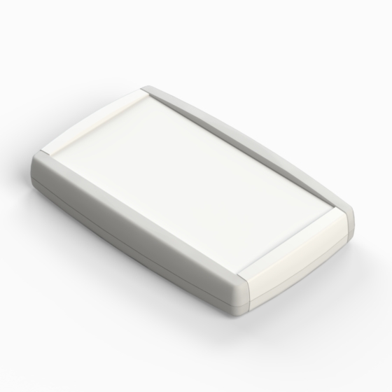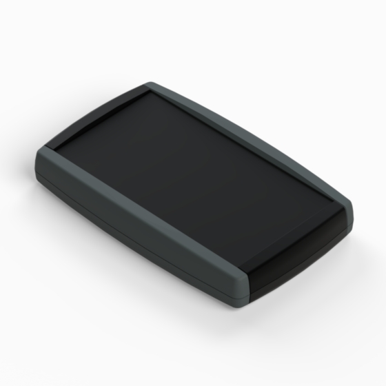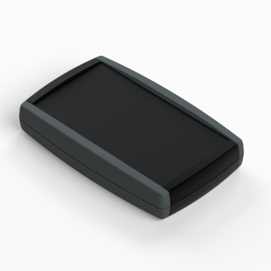ABS enclosures with new soft-touch contoured shape. By utilising multi-shot moulding technique, Teknet features an ergonomic design of elastomer grips (TPU) on the side of the case. The models with “-B” have a battery compartment for two 1.5V mignon-cells (AA) or one 9V flat battery (PP3). The models with “-B2” have a battery compartment for four mignon cells 1,5V (AA) or two flat batteries 9V (PP3). Matt surface finish. Closing by four screws. Upon request aluminium panel “APTB”, Keypad membrane “M” or “MW” (with transparent display area).