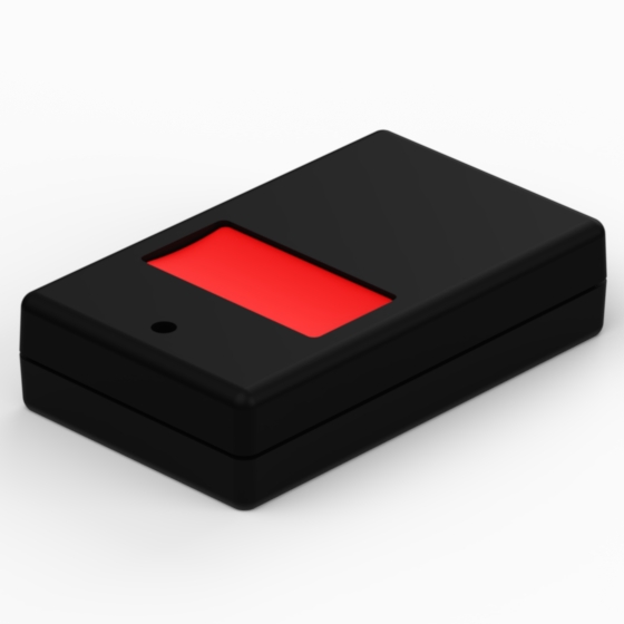 ABS enclosures with rounded corners with one or two push-button configurations. The base has a integral PCB mounting studs. The enclosure is supplied with two metal contacts for 12V battery (Mod. AB12). Matt surface finish. Closing by one screw.