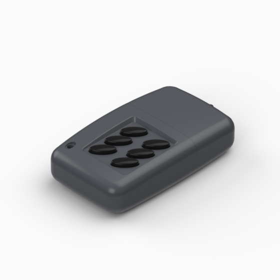 Ergonomic designed ABS enclosures available from one to six push-button configurations. The model “11120” has no buttons. The base has a integral PCB mounting studs. The enclosure is supplied with two metal contacts for 12V battery (Mod. ABM). Matt surface finish. Closing either snap-on or by one screw.