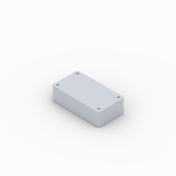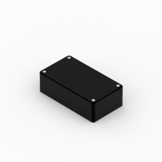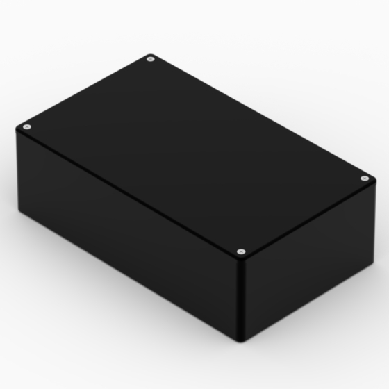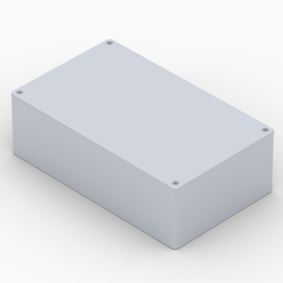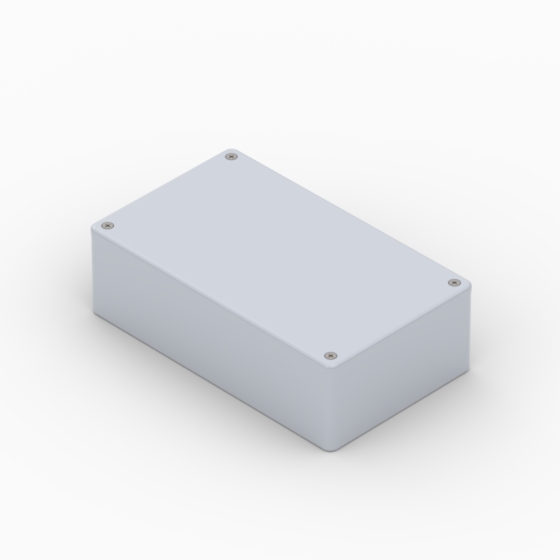 ABS enclosures with rounded corners. Glossy surface finish. The base walls have integral PCB guides.Closing by four screws.