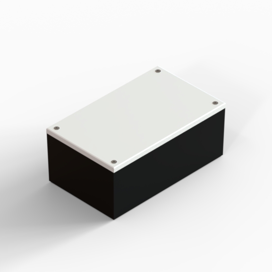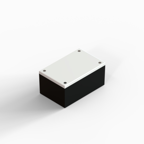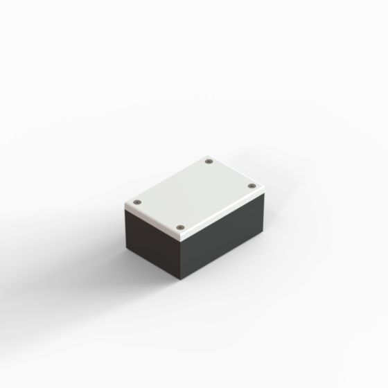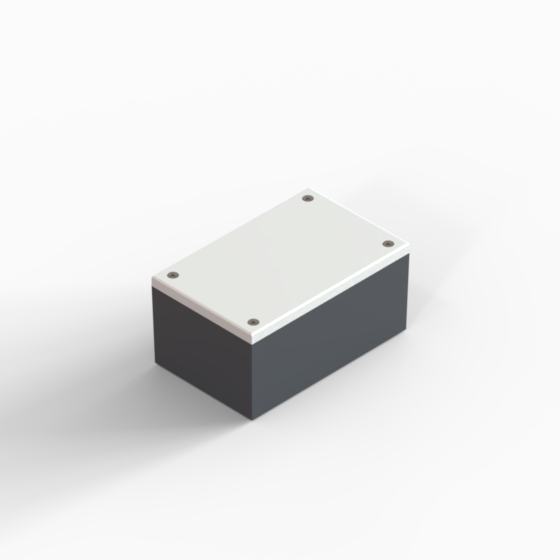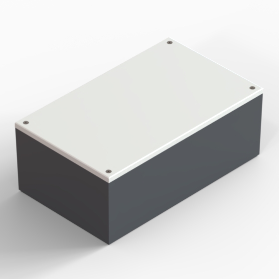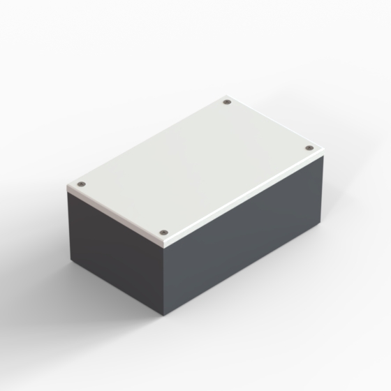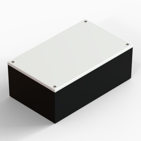 ABS enclosures with square corners and glossy surface finish. The base walls have integral PCB guides.“CP” series have two-tone colour scheme, the cover is always in light gray colour. Closing by four screws.